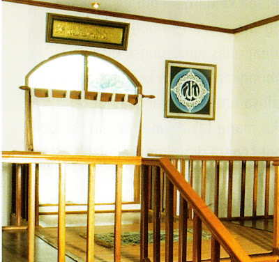 gunakan border berupa lis kayu di atas ruang shalat.